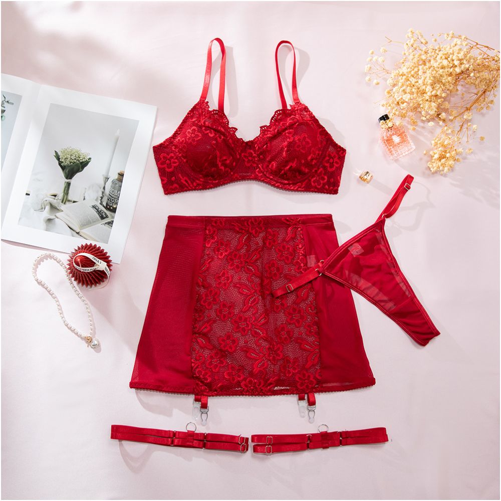 Bold, feminine, and undeniably elegant — this red lace lingerie set is designed to make a statement. The underwired lace bra provides a beautifully shaped silhouette, while the rich red tone adds intensity and confidence to the look.