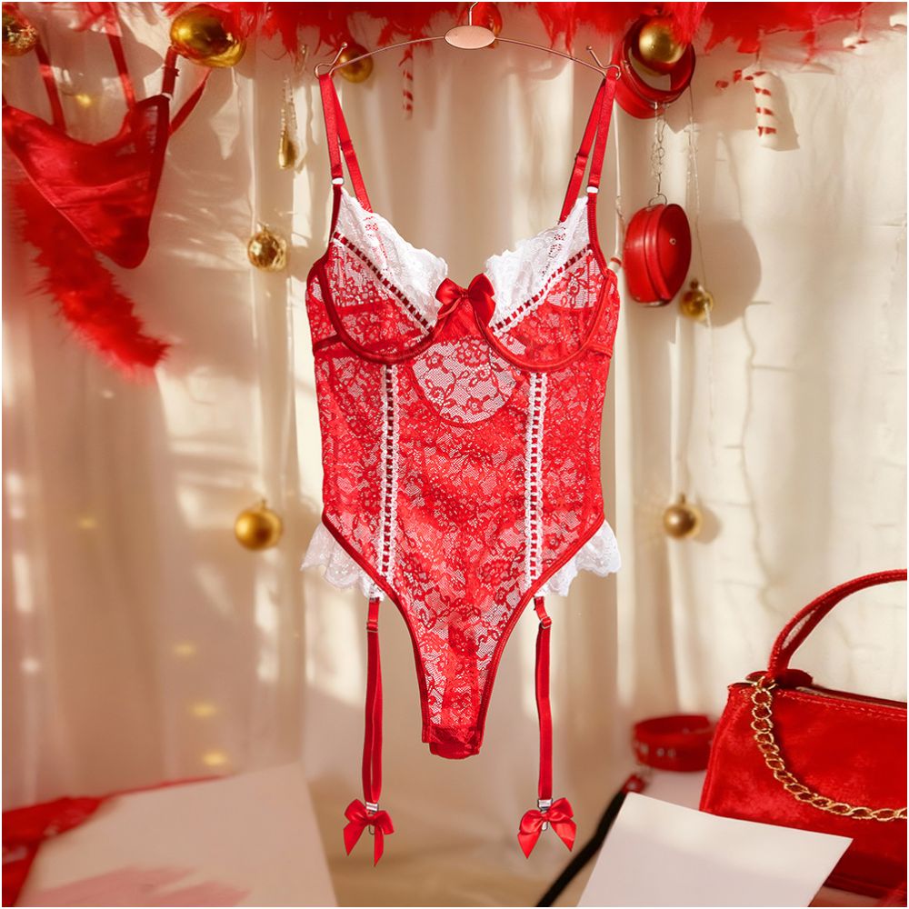 The sheer lace body highlights your shape beautifully, while the adjustable garter straps and feminine bow accents add a luxurious finishing touch. Perfect for special nights, romantic moments, or premium lingerie styling.